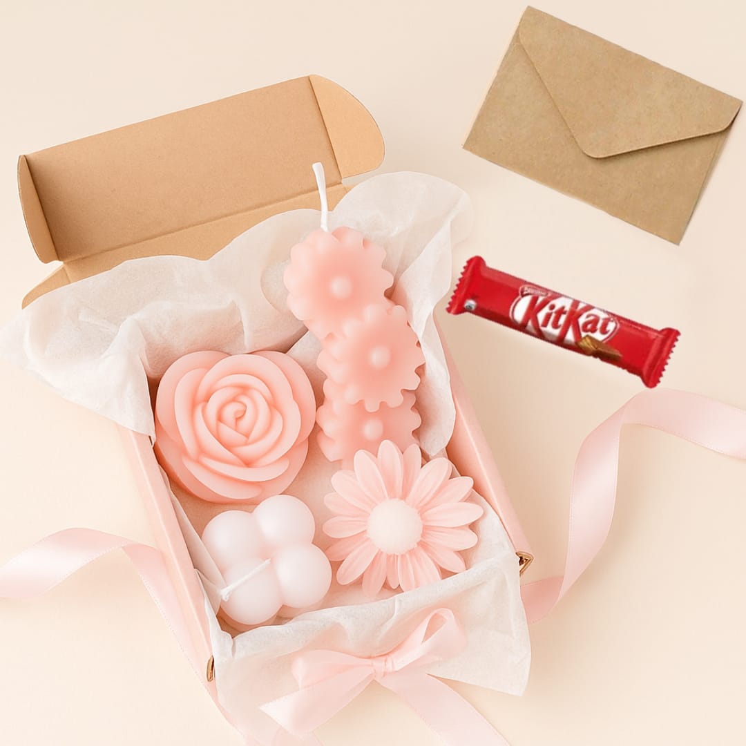 🌸 Includes 4 designer candles – Rose, Daisy, Flower Stick & Mini Bubble